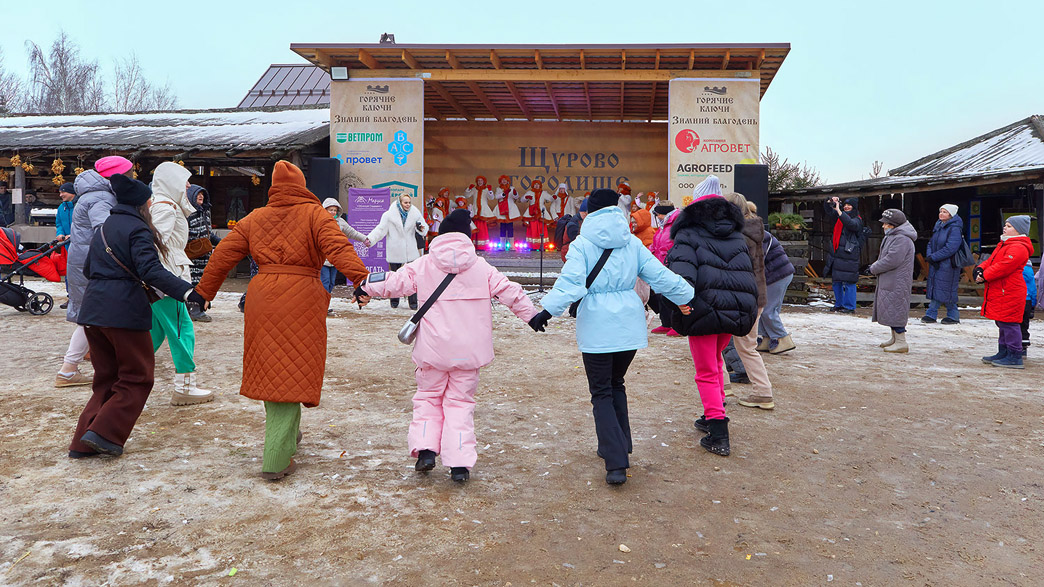 Гости - семьи с детьми разного возраста участвовали в массовых гуляниях: водили хороводы, играли в народные игры, мастерили новогодние сувениры на мастер-классах. Традиционные зимние забавы дополнились визитом сказочных персонажей - Деда Мороза и Снегурочки, которые вручили детям сладкие подарки. Финальным аккордом праздника стал яркий фейерверк.