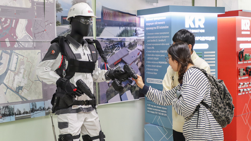 Старший преподаватель кафедры автоматизации, мехатроники и робототехники Института машиностроения и автомобильного транспорта ВлГУ Георгий Котов представил свою разработку – систему управления экзоскелетом нижних конечностей: стельки с тензометрическими датчиками. Это робототехнический комплекс с автоматикой, с датчиками и каналами обратной связи позволяет получать сигналы от реакции опоры нижних конечностей.