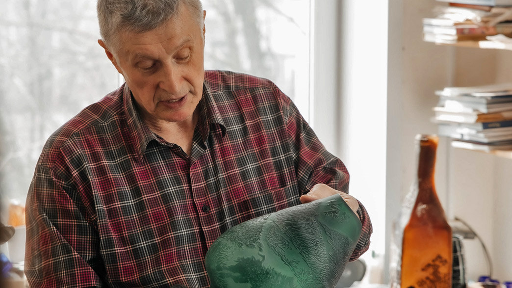 Владимир Иванович Касаткин является одним из ярчайших представителей гусевской школы художественного стекла - на хрустальном заводе он начал работать в 1965 году, переняв основы профессии алмазчика от своего отца. В 1971 году, после окончания Ленинградского высшего художественно-промышленного училища имени В. И. Мухиной, он вернулся на родное предприятие, работая на котором спроектировал десятки изделий, ставших неотъемлемой частью заводского ассортимента.