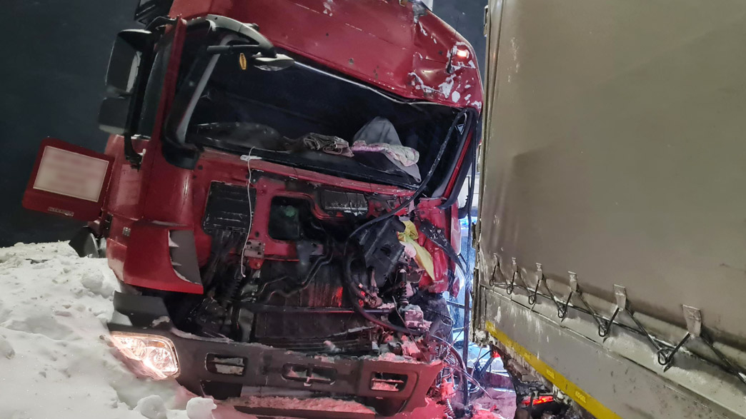 Как рассказали Зебра ТВ в Госавтоинспекции Владимирской области, ДТП с участием двух большегрузов произошло 16 февраля в 21:15 — в разгар принесенной циклоном «Вивиан» метели.