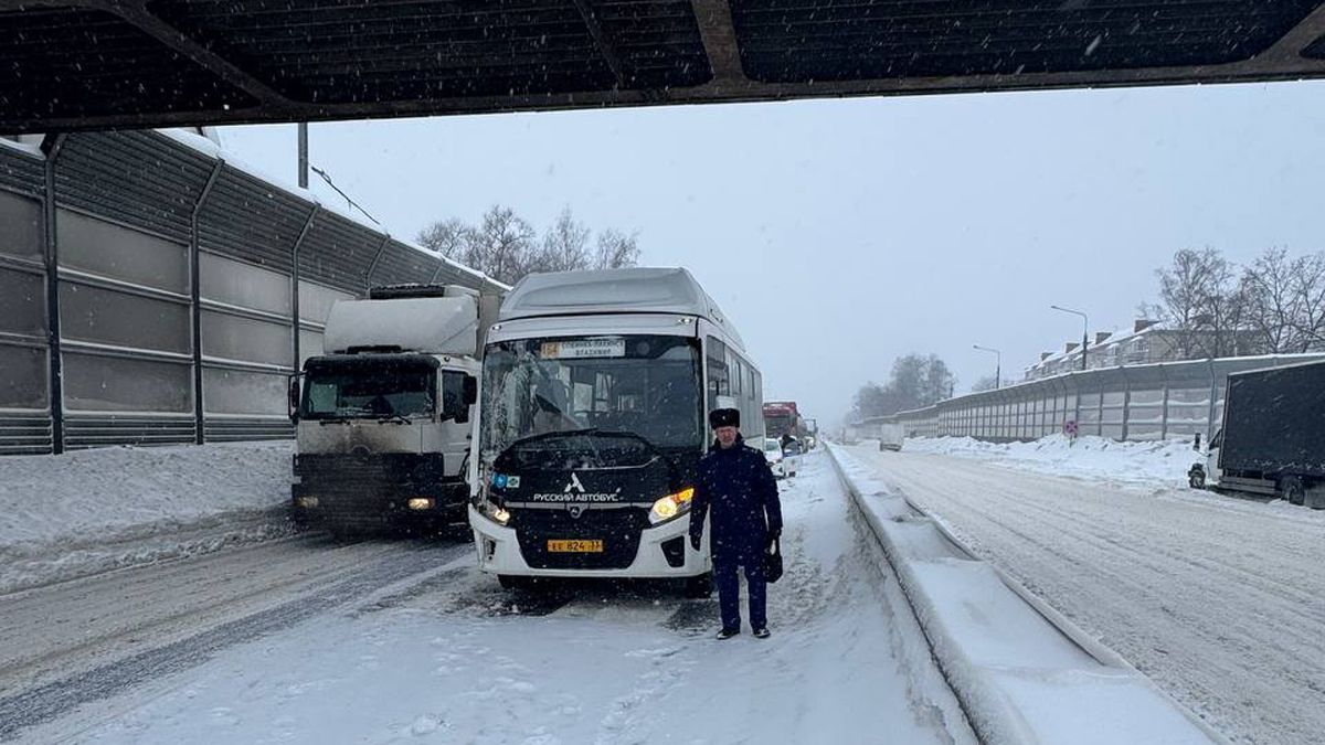 Авария с участием общественного транспорта произошла сегодня на 153 км ФАД М-7 «Волга» в черте города Лакинска. Грузовой автомобиль «Вольво», двигавшийся со стороны Москвы во Владимир, столкнулся с ехавшим в попутном направлении пассажирским автобусом на межмуниципальном маршруте № 164 «Владимир-Собинка». После этого произошло столкновение автобуса с двигавшимся сзади автомобилем «Газель».
