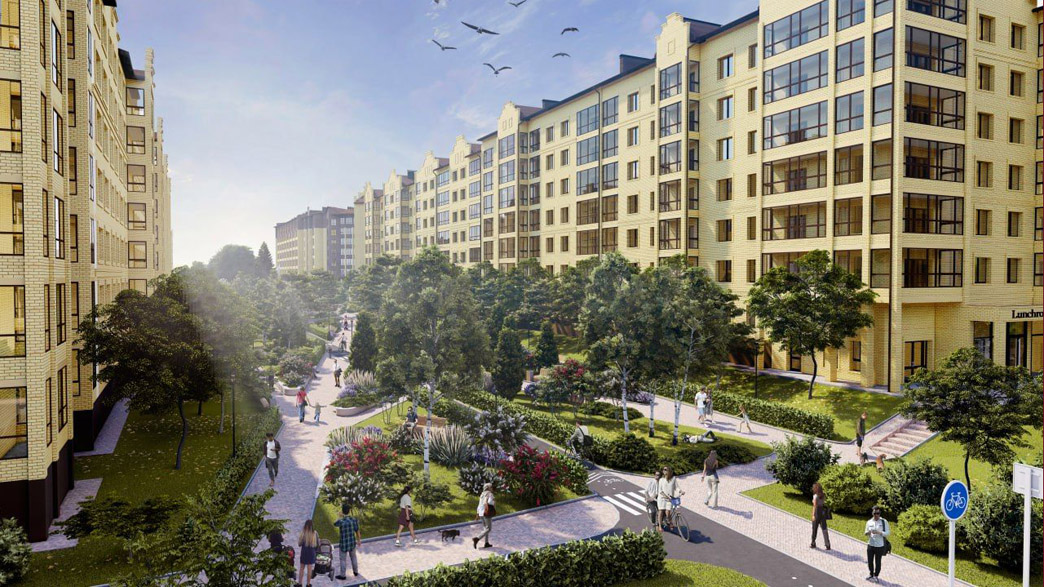 Запланировано устройство пешеходных тротуаров, установка малых архитектурных форм, озеленение (деревья и кустарники) и многолетние газоны, установка освещения. Проект предусматривает устройство тротуаров из плитки четырех видов и детских площадок. На всей территории вдоль тротуаров и площадок предусмотрено освещение.
