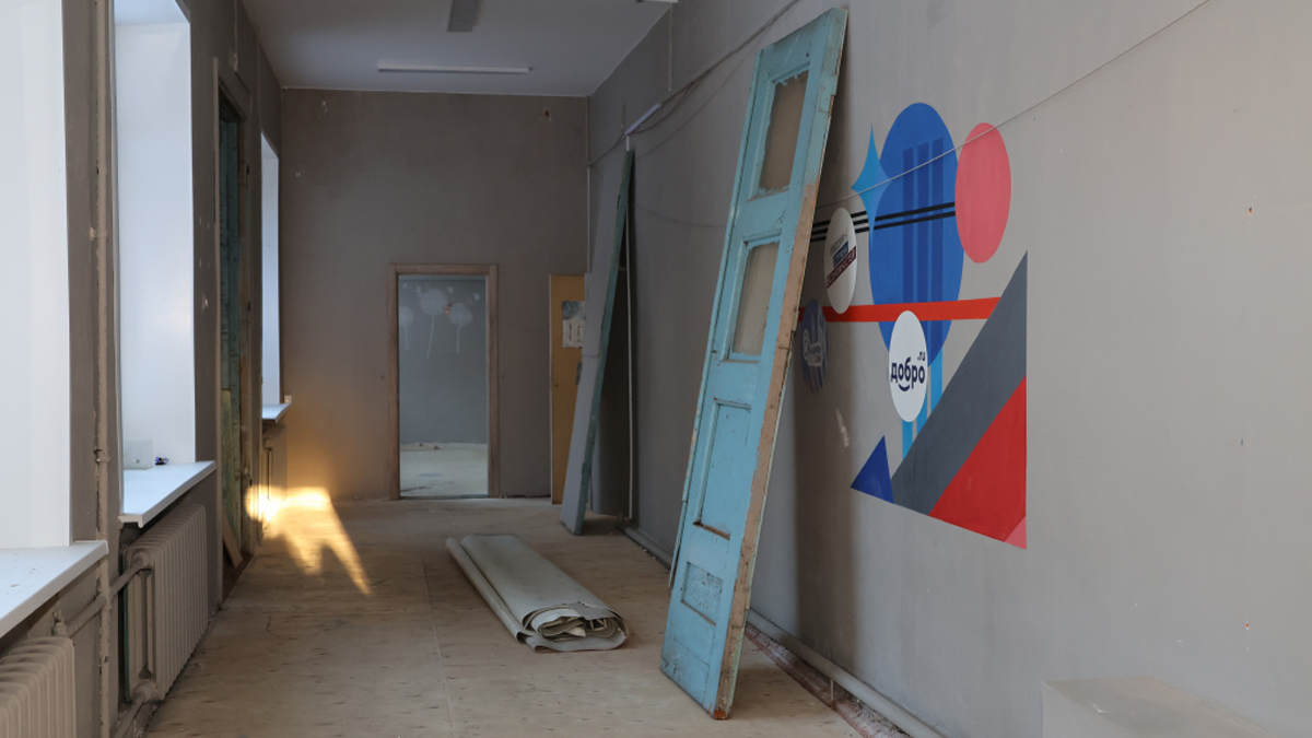 В школе №8 подрядчик демонтировал двери и продолжает демонтировать внутреннюю отделку и недействующие стояки. Также рабочие заняты грунтовкой и шпаклёвкой стен в классах, чтобы подготовить их к окрашиванию. Ежедневно на объекте задействовано 12 человек.