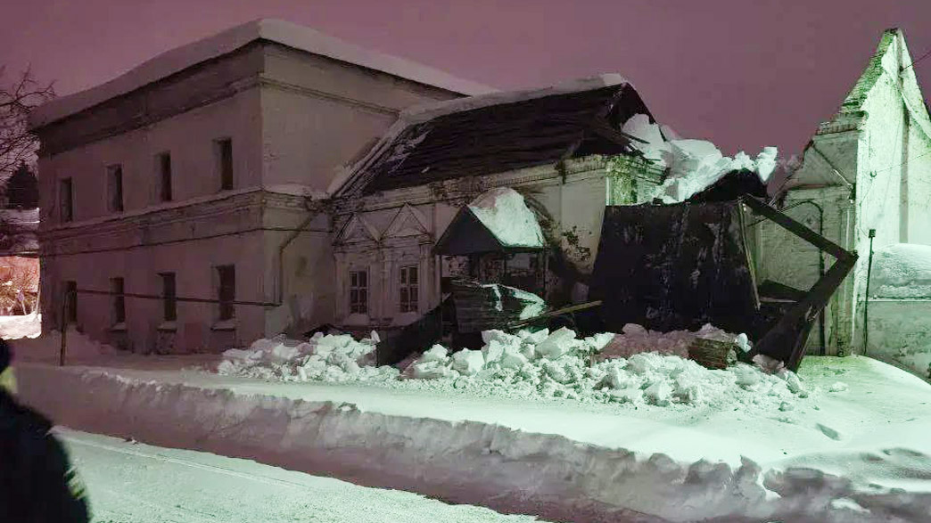 Читатели предоставили Зебра ТВ фото рухнувшей крыши в здании пристройки к церкви в Вязниках. Пострадавших нет — пристройка недействующая, для нужд храма она не использовалась.