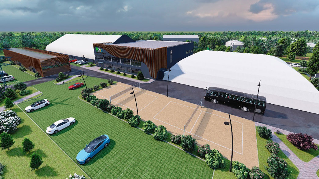 Физкультурно-оздоровительный комплекс будет предназначен для круглогодичных занятий пляжными игровыми видами спорта, плаваньем, футболом, теннисом и фитнесом. Здание ФОКа разделено на четыре части: спортивный зал для пляжного волейбола, бассейн с комплексом раздевалок, тренажерный зал и зал для групповых занятий, спортзал для игр в теннис и мини-футбол с трибунами на 45 зрителей, надземный паркинг на 32 места. По проекту одновременно в спорткомплексе смогут находиться около 300 человек. В здании ФОКа предусмотрены помещения для конференций, кафе, магазин спорттоваров, уличные площадки для отдыха и детская площадка. В апреле 2025 года в региональном минспорте заявляли о 20-процентной готовности объекта, в июне — о более чем 30-процентной готовности.