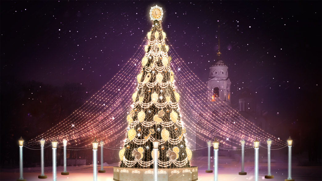 С 2008 года в центре Владимира на Соборной площади города, где проходят главные празднества, устанавливали ель «Домашняя» - теперь ее, возможно, подлатают и установят на новом месте. Новая ель, которая называется «Новогодняя», будет не просто одиночной конструкцией — от макушки будет идти светодинамический шатер со световыми стойками, имитирующими свечи. Диаметр всей конструкции составит 30 метров, высота – 18 метров. Ель будет светомузыкальной.