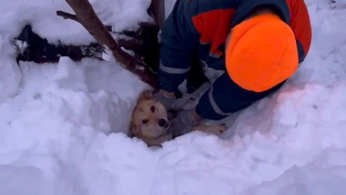 Счастливую историю вызволения из снежного плена хозяйки и спасения из-под снежного завала ее собаки