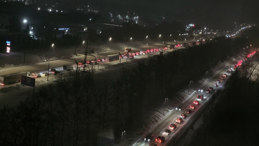 Большегрузы остановили федеральную трассу М-7. Большая вечерняя пробка скопилась на Пекинке в черте города Владимира.