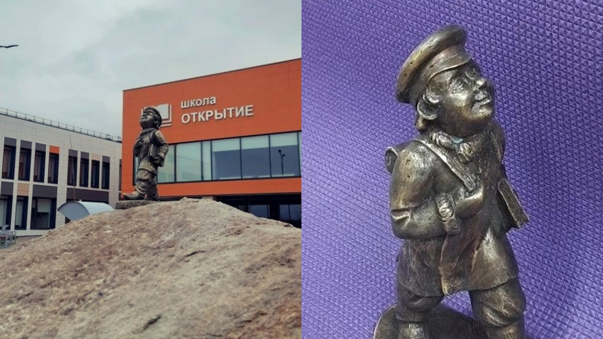 У новой школы "Открытие" в городе Суздале, которая наполнились учениками в прошлом сентябре, установили бронзовую фигурку гимназиста - это новый суздальчонок.