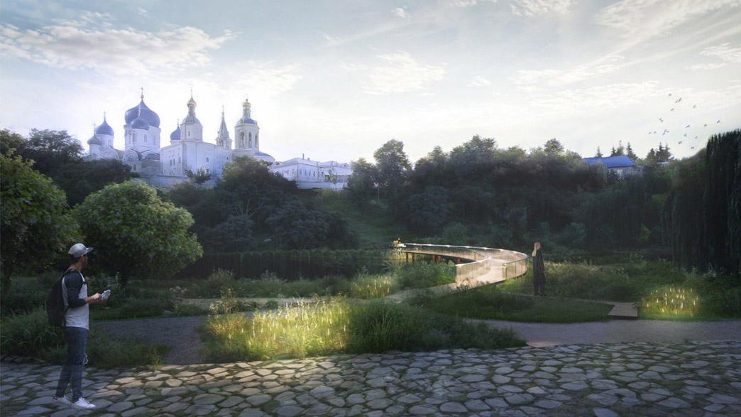 пешеходный мост через пруд к Боголюбскому монастырю;