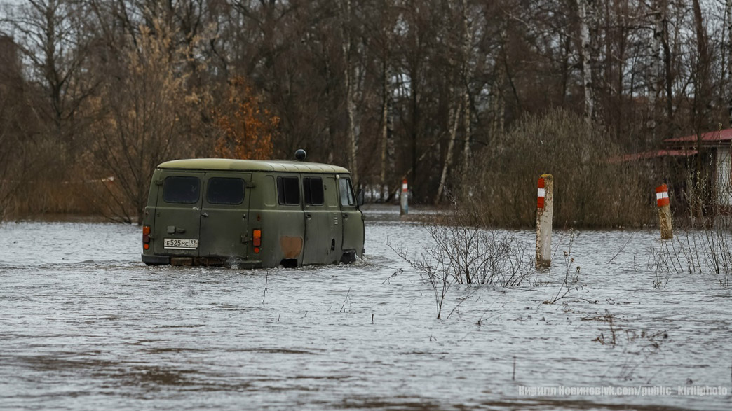 Фотограф Кирилл Новиков делится эффектными снимками пришедшего в город Собинка разлива на Клязьме. Затопило микрорайон Большие Сокольники.