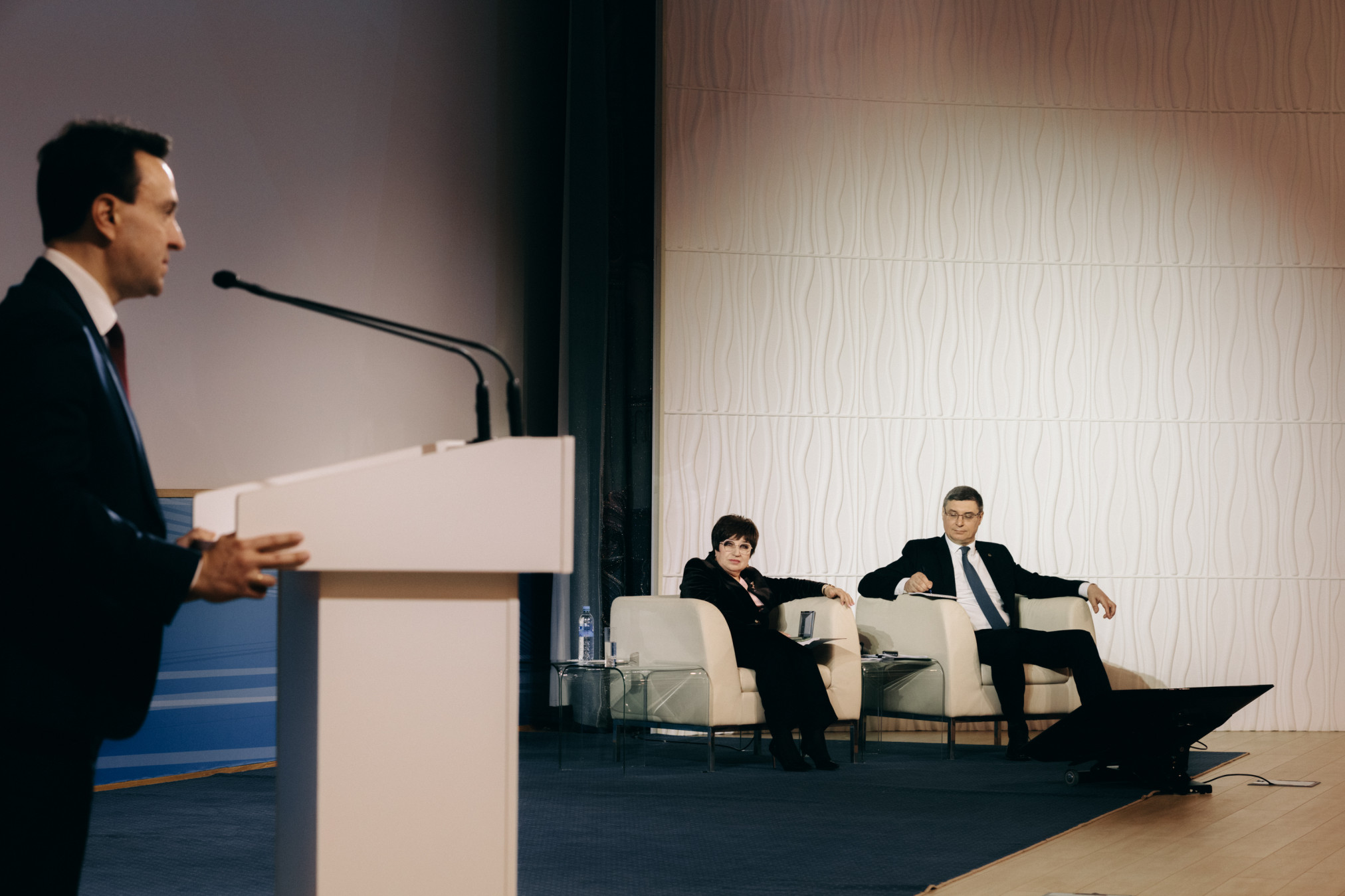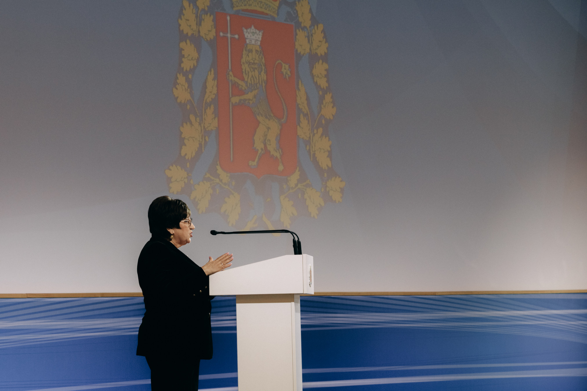 Аплодисменты! Александр Александрович Авдеев и председатель ЗакСобрания Ольга Николаевна Хохлова вошли в зал.