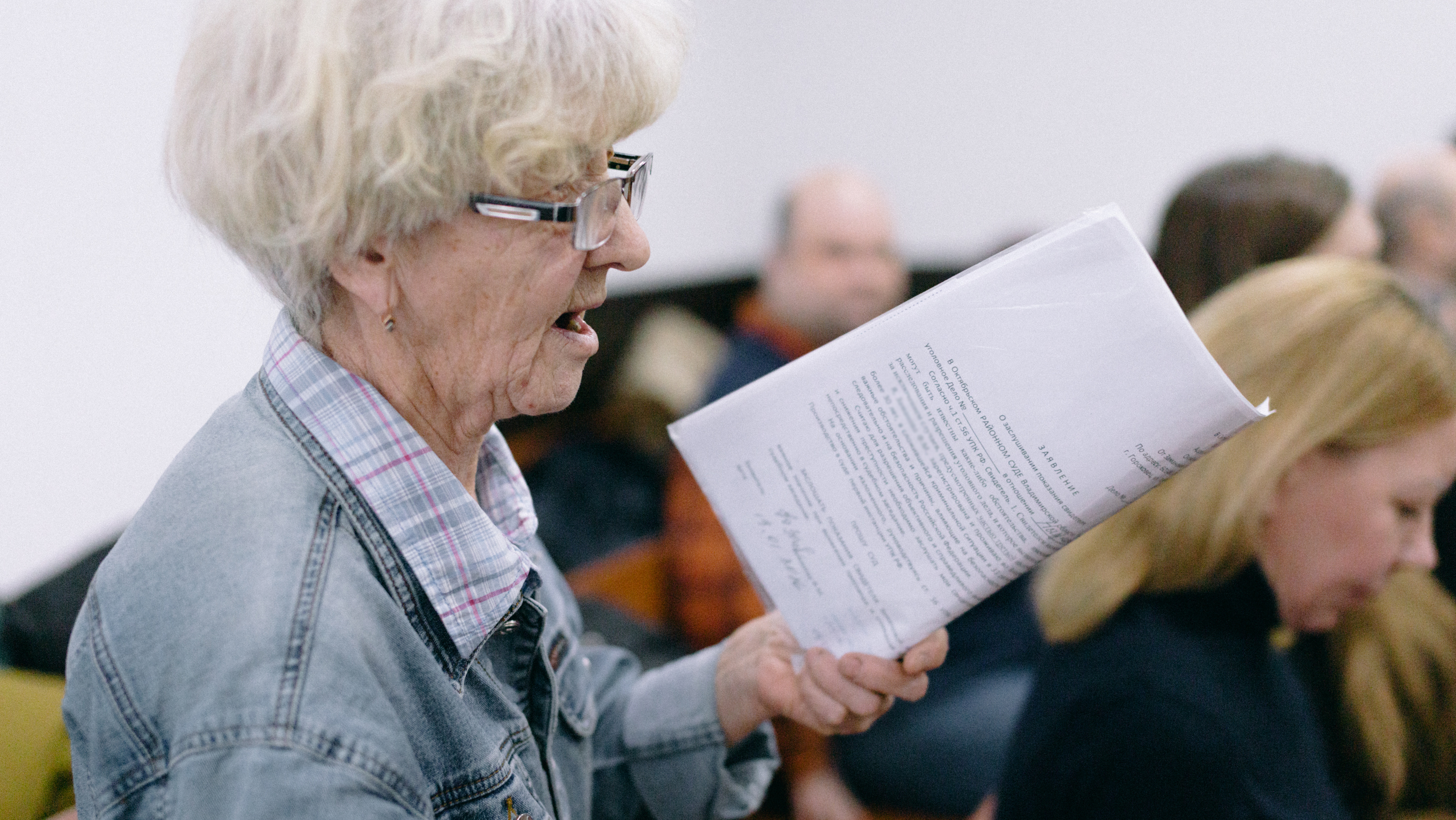 Женщина отказывалась представиться, заявляя, что она ранее куда-то подавала заявление с ходатайством о выступлении. В итоге в зал вызвали пристава — на всякий случай.